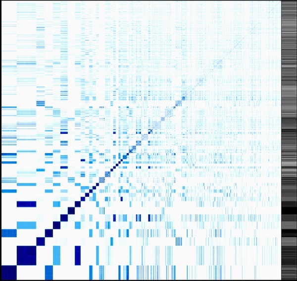 Preliminary results: Heatmap comparing the found clusters. A comparison with the traditional Enzyme Commission (EC) classification system can be found at https://www.tbi.univie.ac.at/~hekker/echeat/echeat.xhtml. Also take a look at Visual things#Enzyme clustering.